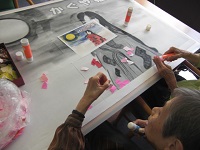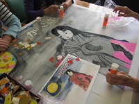 台風21号が猛威をふるう中、施設内では先日ご報告したチャレンジ企画『貼り絵』を開始しました。