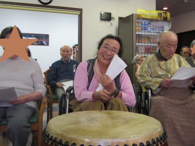 入居者様の中には太鼓や踊りが好きな方が多いです。