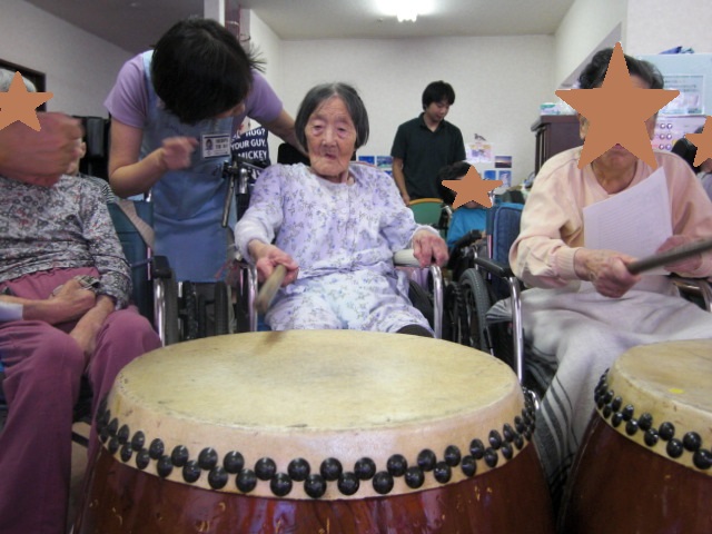 太鼓を叩かせてもらって昔を思い出し涙されている入居者様もいらっしゃいました。
