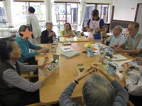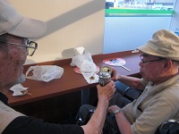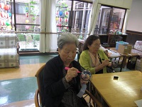 入居者様がリハビリの休憩中にテレビに流れていた歌詞を見ながら口ずさんでいらっしゃいました。