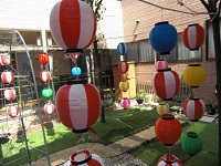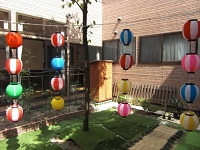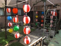 メディス川越も、それを真似て中庭に「百万灯」とまではいきませんが提灯を飾ってみました。