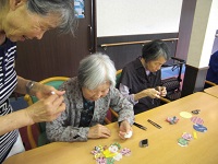 今日は先生に教えてもらいながら、胸につける飾りを作成しました。