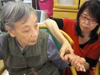 今日は中村先生と入居者様のご家族を講師に迎え、入居者様にアロマオイルとハンドマッサージをして頂きました。