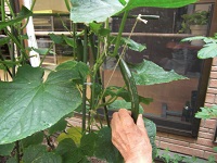 中庭で育てているきゅうりがだいぶ大きくなりました。