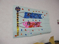 ふたつめは、山下清画伯ばりの「貼り絵」のこいのぼり。