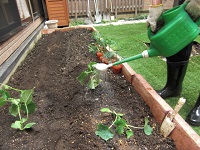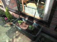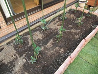 今日は昨日買ってきた苗を中庭の畑に植えてもらっています。
