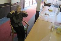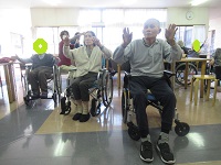 いつもの体操も より腕を伸ばして!難しい方は職員と一緒に☆
