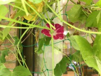 施設中庭に植えた『朝顔』が、開化しました。