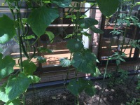 施設中庭の春先に植えた『きゅうり』が、大きくなりました。