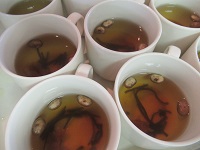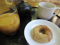 おやつには同じく手作り季節のおやつで『豆乳ドーナツのきな粉がけと福茶』