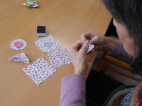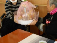 昼食に『雛人形』をイメージしたおむすびを食べていただきました。