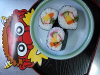 栄養士、厨房調理員が1つ1つ卵焼きや海苔を使用し