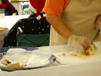 おつまみに、みなさんの目の前でチキンを切り分け、