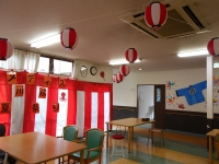 施設内ホールや廊下も夏祭り使用に飾り付けをはじめております。