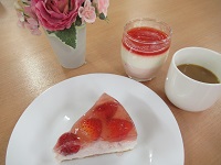 挽きたて珈琲に合わせるのは厨房さん手作り『いちごのケーキ』です☆