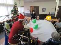 クリスマスカラーの赤と緑の風船を使って 風船バレーをしました(*^^*)