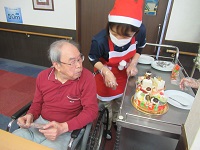 クリスマス会のようなレクの後はお楽しみのクリスマスケーキです!!