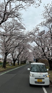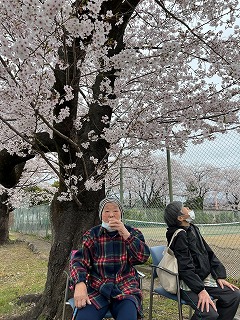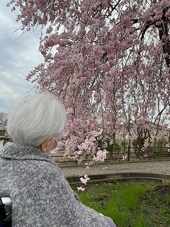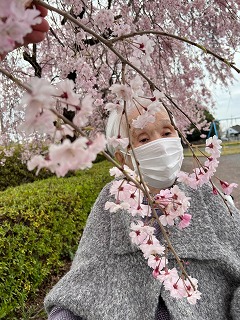 久しぶりの満開の桜に入居者様も満面の笑みにて