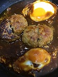 お昼の時間にフライパンで焼いて目玉焼きも半熟で添えて