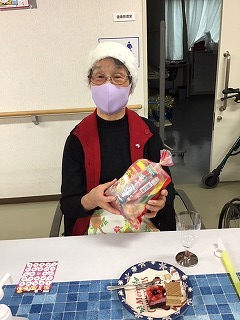 クリスマス会にてサンタさんからお菓子のプレゼントを