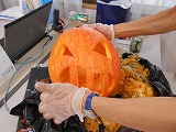 ハロウィンカボチャの作成にて中身をくりぬきました☆