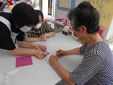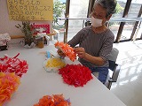 梅雨の壁飾りを入居者様と協力して一緒に作成