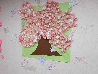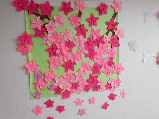昨日から今日にかけて3月の壁飾りを利用者様と一緒に