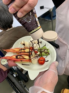 昨日のレクでのフルーツチョコ掛けの盛り合わせの