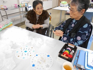 2月の壁飾りが入居者様も一緒にお手伝いしてくださり