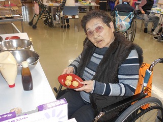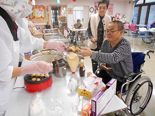たこ焼きが出来上がると入居者様が続々と並んでいき