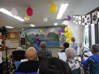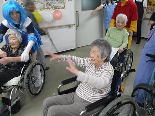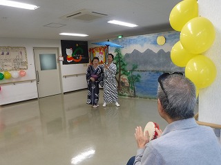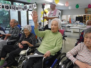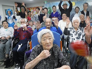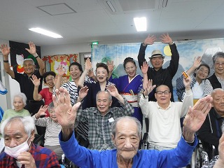 男性の入居者様も最前列で微笑ましい笑顔を絶やさずに
