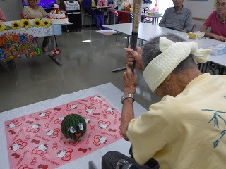 誕生日会のあとはお楽しみのスイカ割りを行いました!