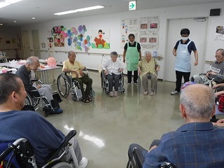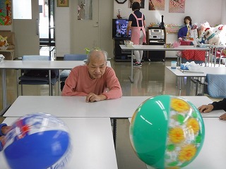 今日はおやつ前に1Fホールに集まって頂き風船サッカーをして