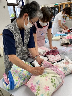 乾いてしまったので利用者様と一緒に洗濯たたみを行いました。