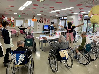 今日も1Fホールにておやつ前の集団体操を行っています。