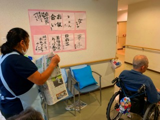 みなさんに書いていただいた書初めを施設内にて掲示させて