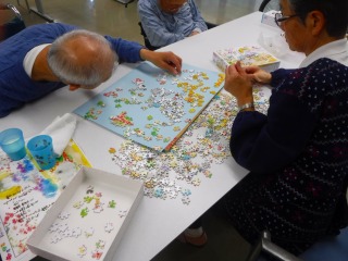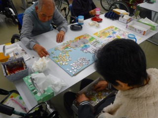 今日も午前中から1Fホールにて何名かでパズル作成をおこなっています!