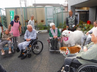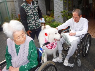 入居者様も喜んで玄関前に集合しわんちゃんと写真撮影!