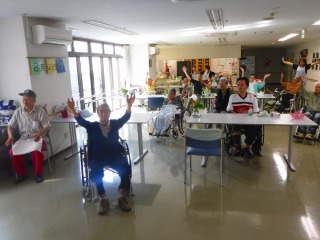 体操にも参加して頂いています!可動範囲が少ない人でも出来る範囲で