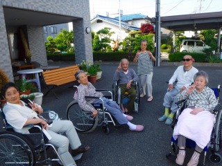 今日は天気もよく庭先のお花を見ながら休憩中です!