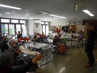 みなさんスタッフの掛け声に合わせてぴったりと動かせています!
