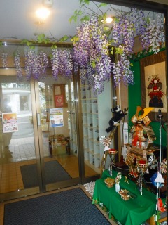 桐生Ⅰ番館入口にある手作りのふじの花も以前よりも増して