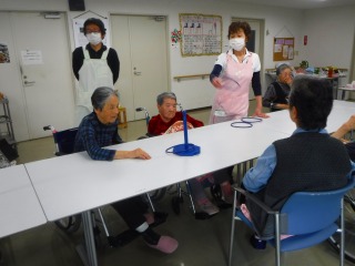 テーブルを連結させみなさんで輪投げを楽しんでみました♪