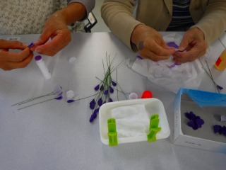 今日は手先の練習ということで花びら制作のお手伝いを