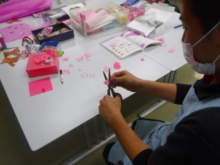 今日は壁飾りのための桜を器用にみなさんで作っています!