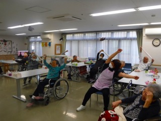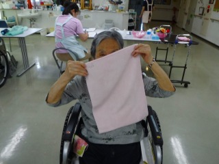 いつもとは雰囲気を変えてタオルを使った体操をしました!