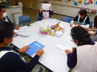 検討をスタッフ間で意見を交換しあい新しい目標などを決め
