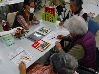 今日はみなさん集まってお絵かきと色塗りタイムです。