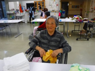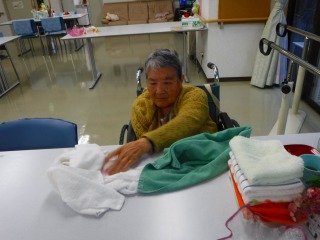 今日は洗濯たたみのお手伝いをしてもらってます。