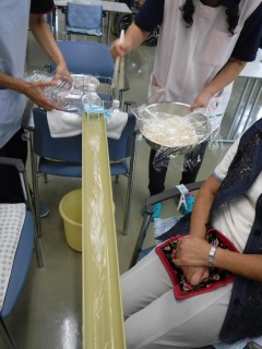 皆さん、一生懸命準備して、ホール内で流しそうめん!!